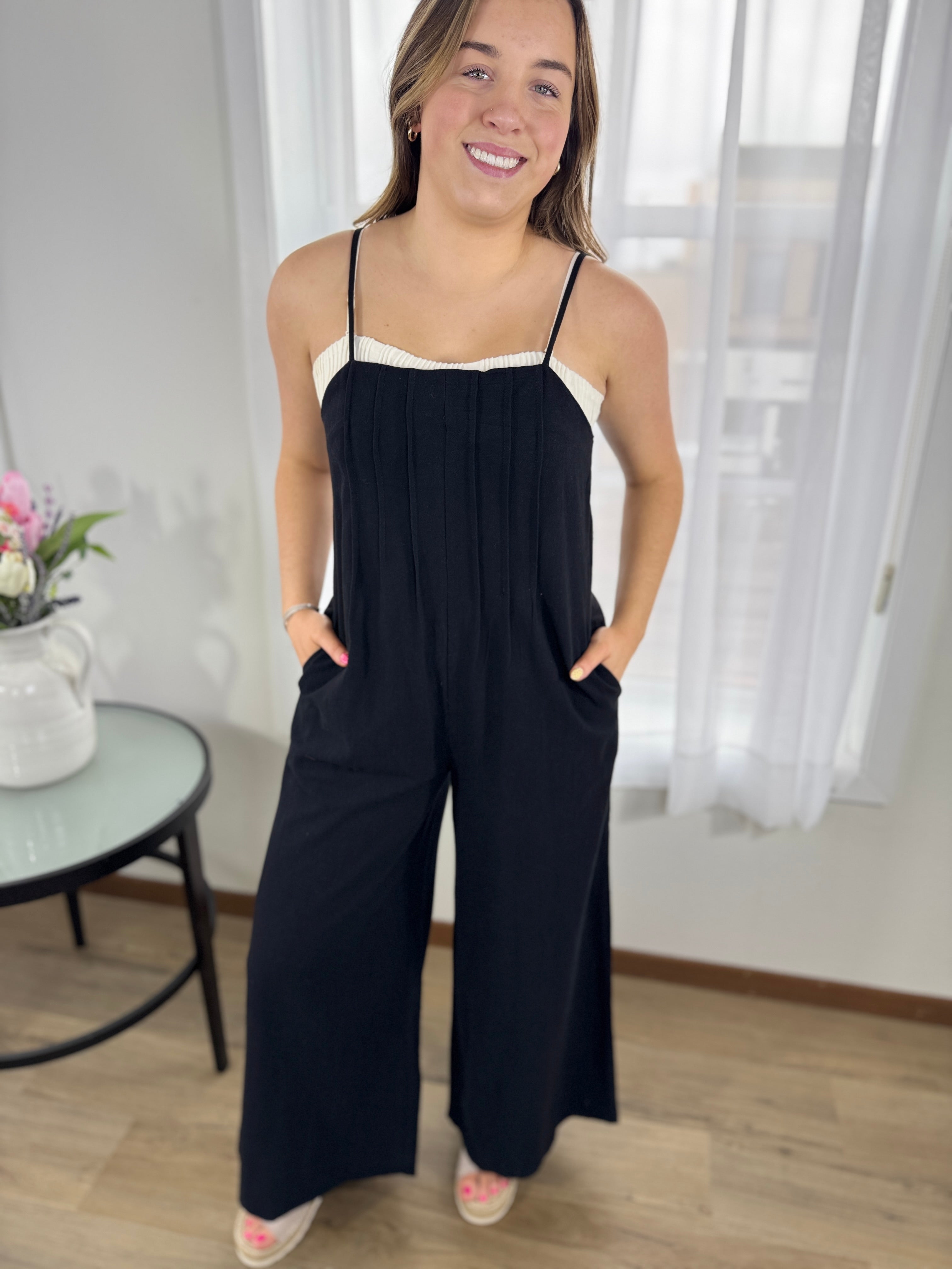 Experience effortless elegance in this breezy wide-leg jumpsuit featuring sophisticated pleated detailing and functional side pockets. This chic, one-piece silhouette offers a flattering drape and breathable comfort, making it your go-to choice for sun-drenched days and elevated evenings.