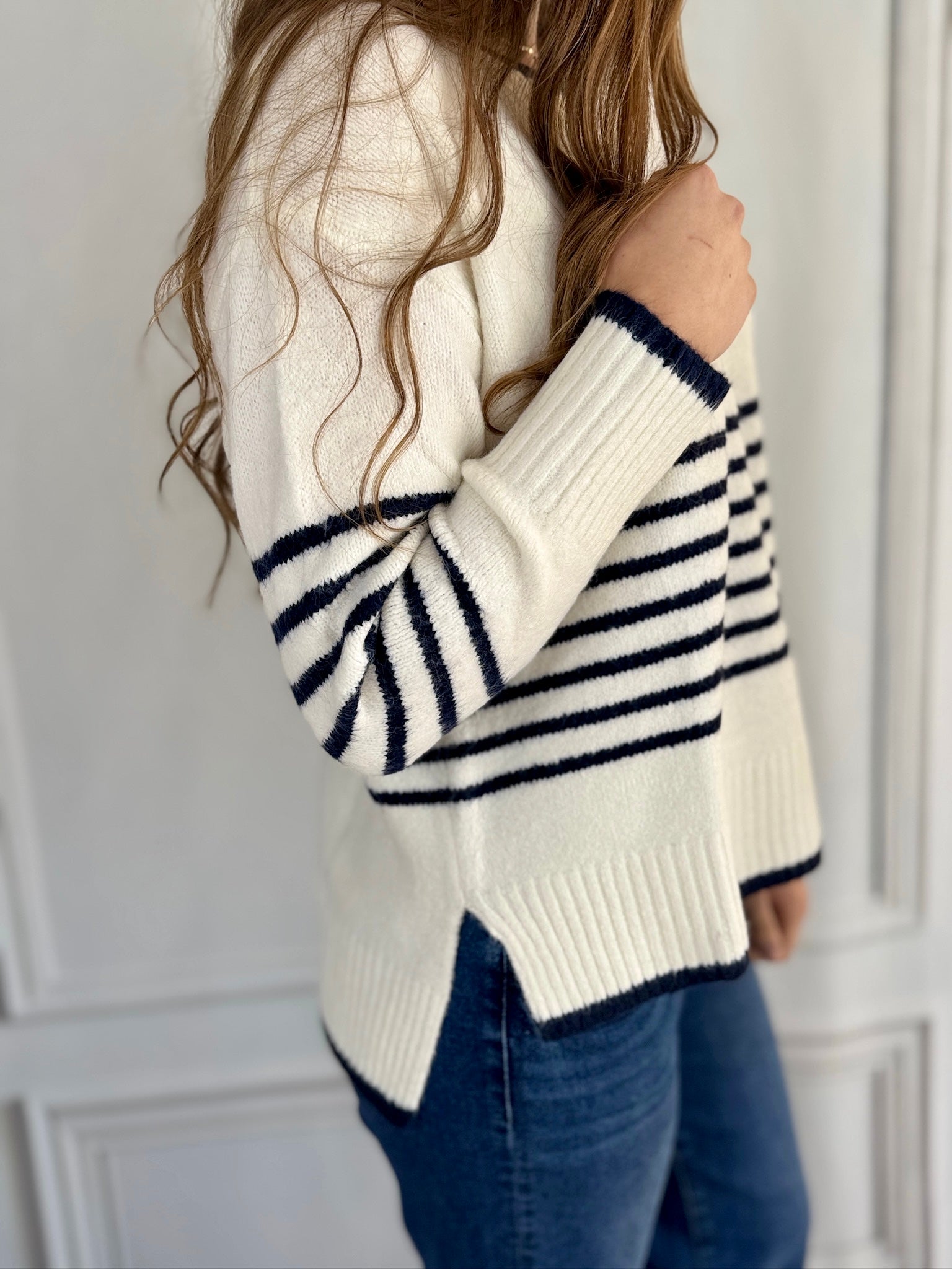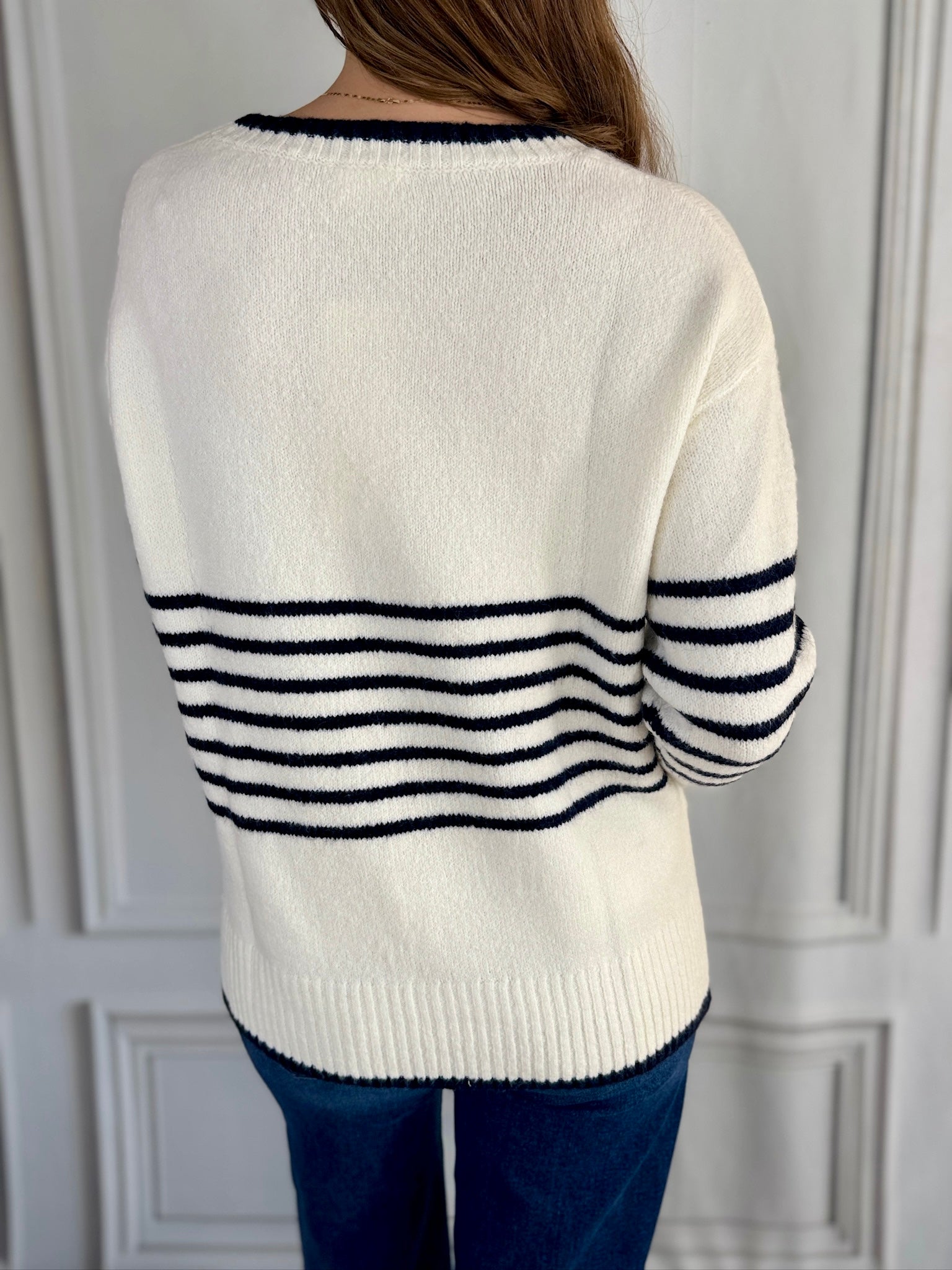 - White with Navy Stripes