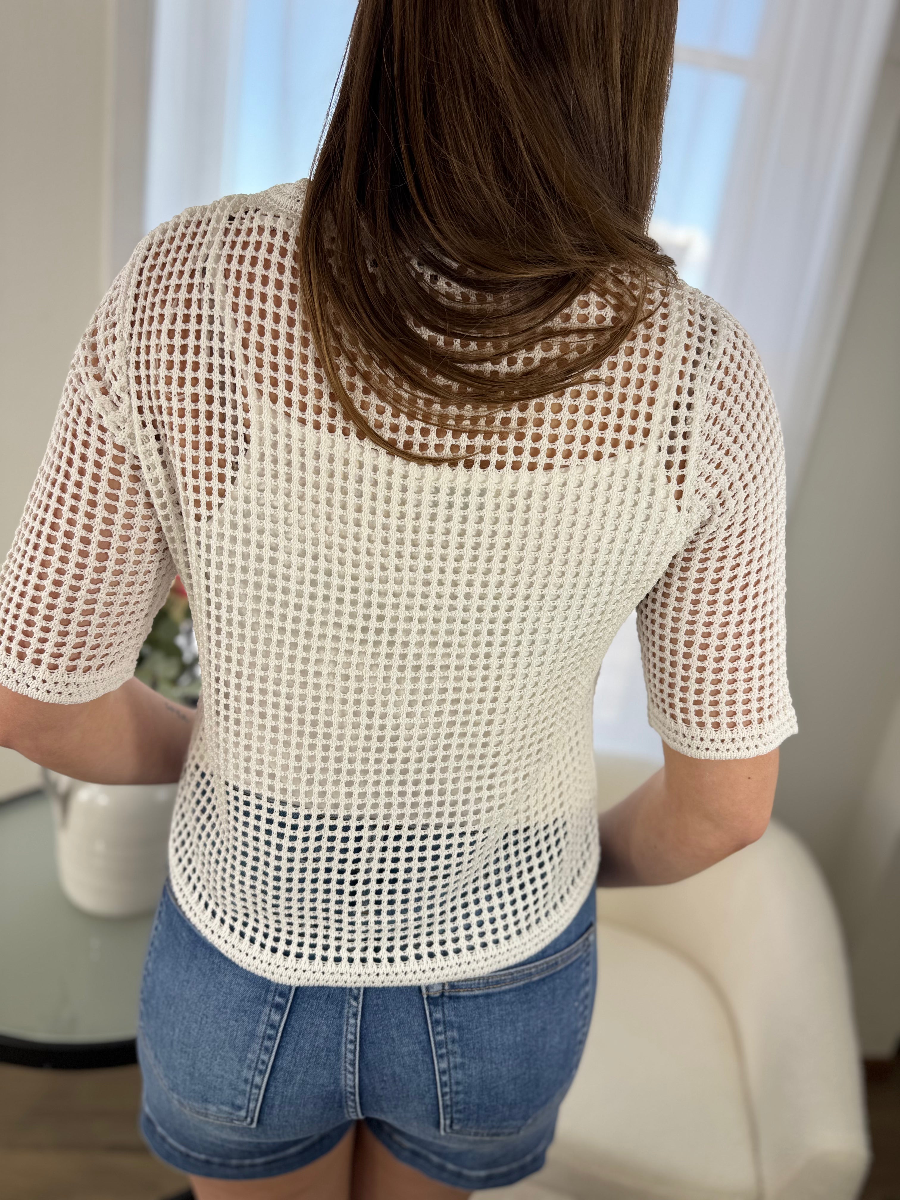 Elevate your layering game with this breezy, open-knit mesh top designed for effortless summer style. Its sheer, breathable texture adds instant edge and sophisticated dimension to any outfit. Perfectly versatile for days or nights.