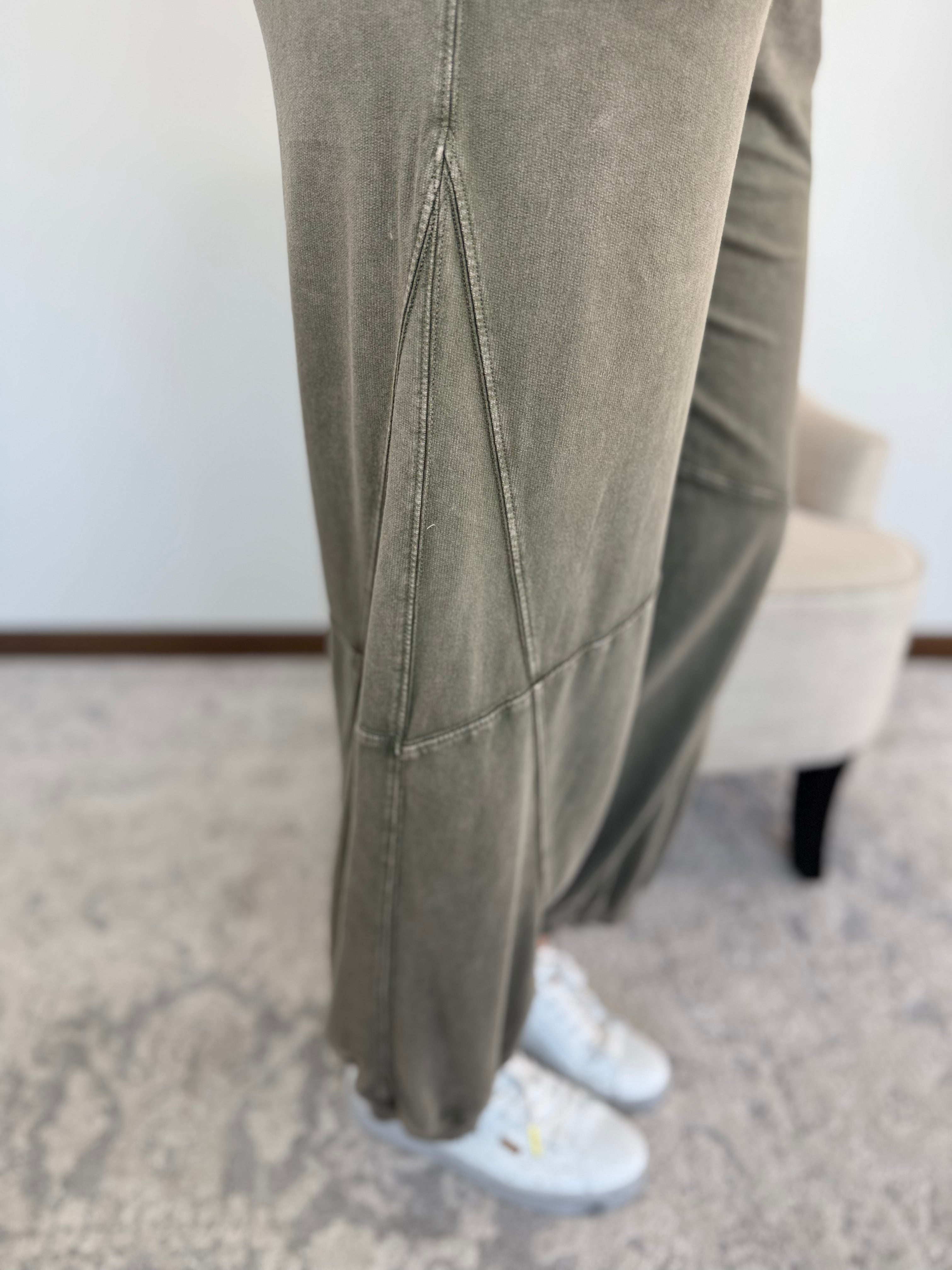 - Trendy mineral-washed Olive and Coffee.