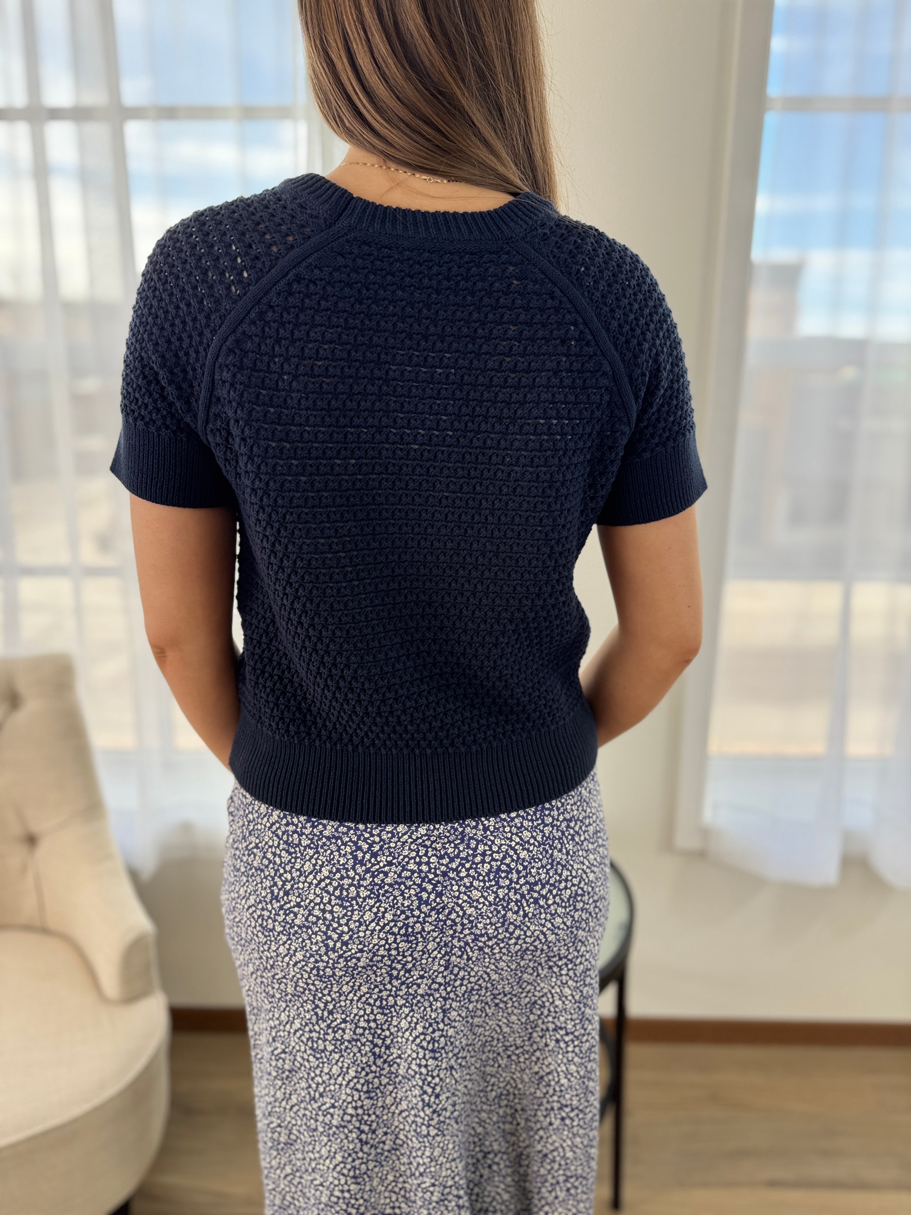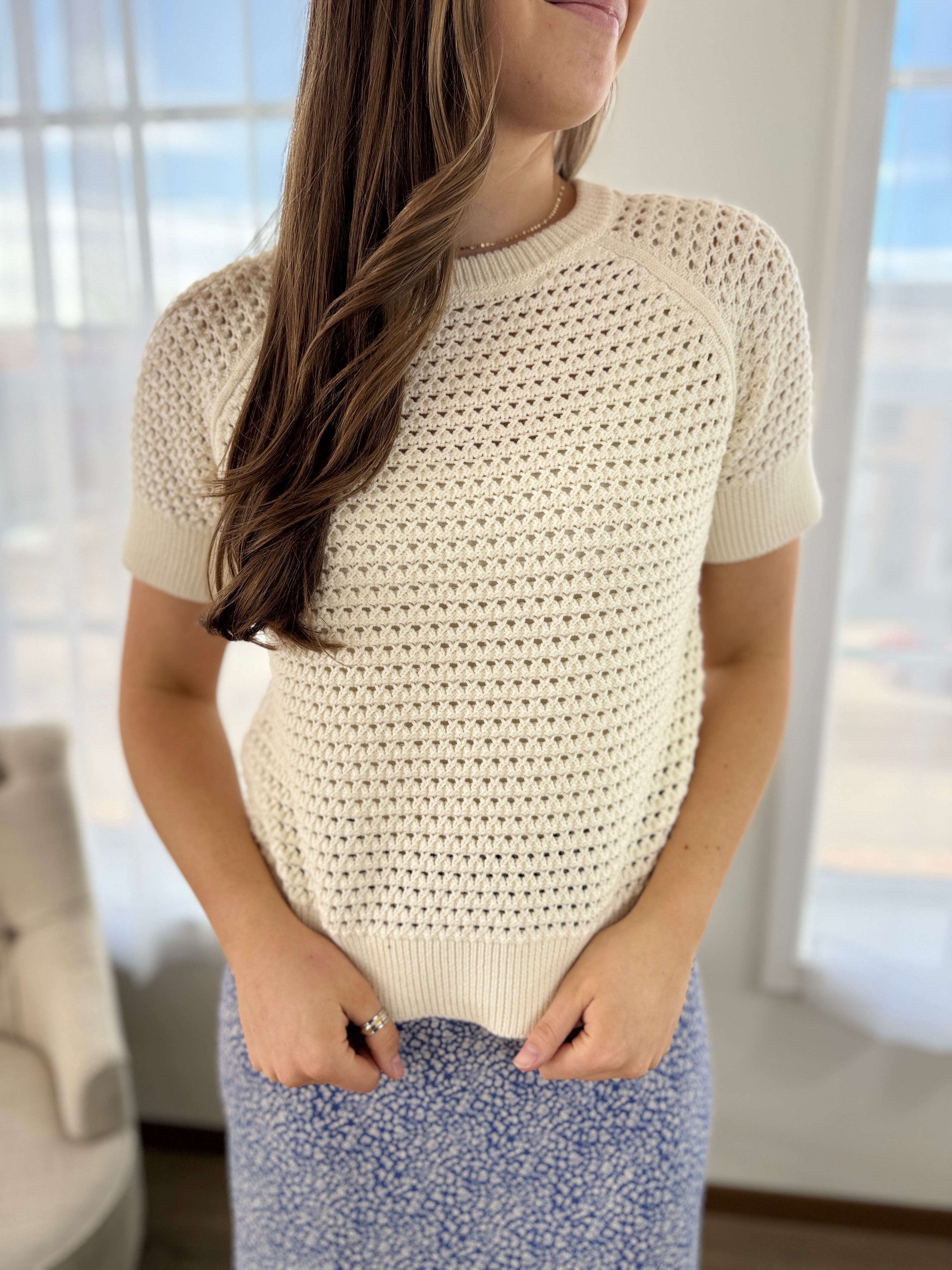 Elevate your daily rotation with this sophisticated knit top featuring an intricate, breathable textured weave. This versatile piece combines modern open-knit detailing with a timeless silhouette for effortless, year-round style. Pair it with denim pants or shorts.