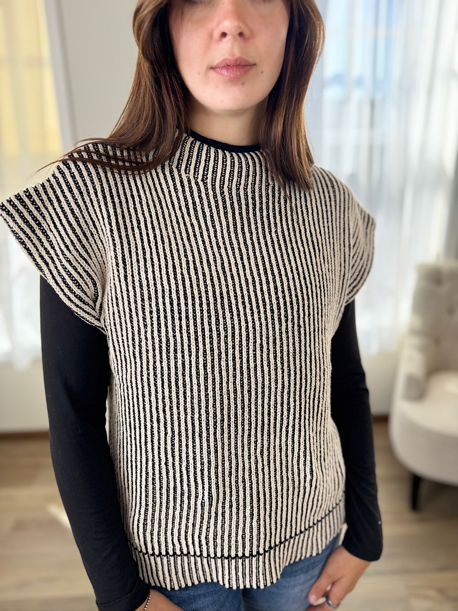 - 2 tone ribbed knit sweater