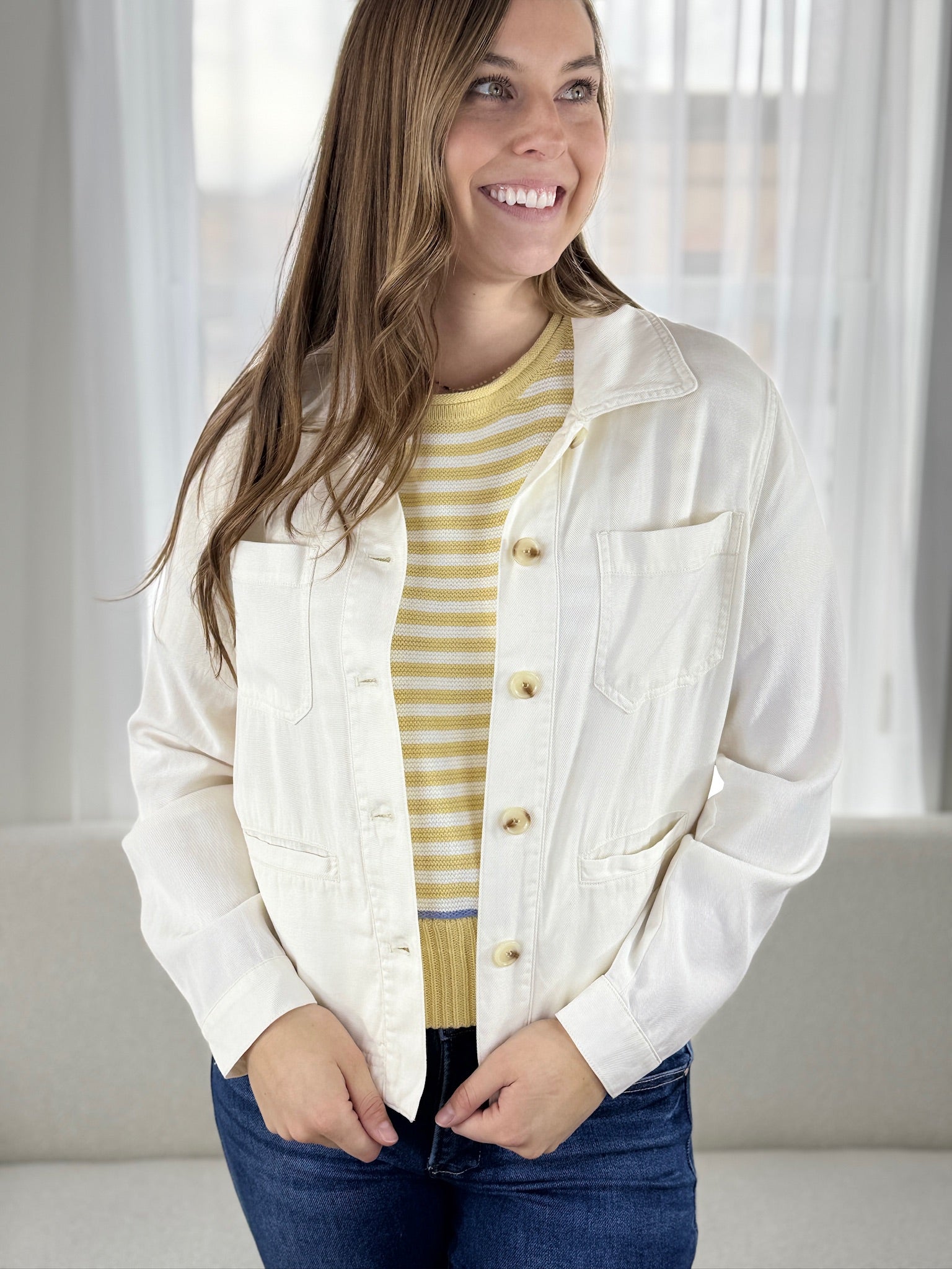 Elevate your everyday wardrobe with the Rosella Jacket. Combining rugged functionality with a soft, feminine aesthetic, this lightweight button-down is the ultimate transitional layer. Featuring a modern structured collar and spacious utility pockets, it’s designed for the woman who refuses to choose between style and practicality. Whether you choose the romantic Peony Pink or the timeless Ivory, this jacket is your new go-to for effortless, "cool-girl" layering.